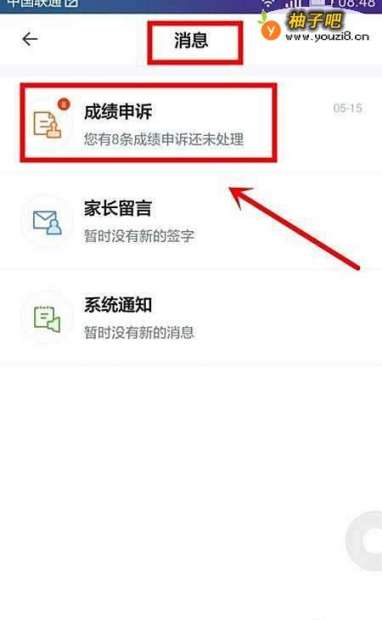 4我们可以看到该平台给予我们的信息情况,可以看到有成绩申诉的信息,点击该条信息;