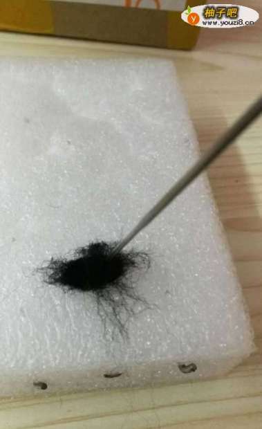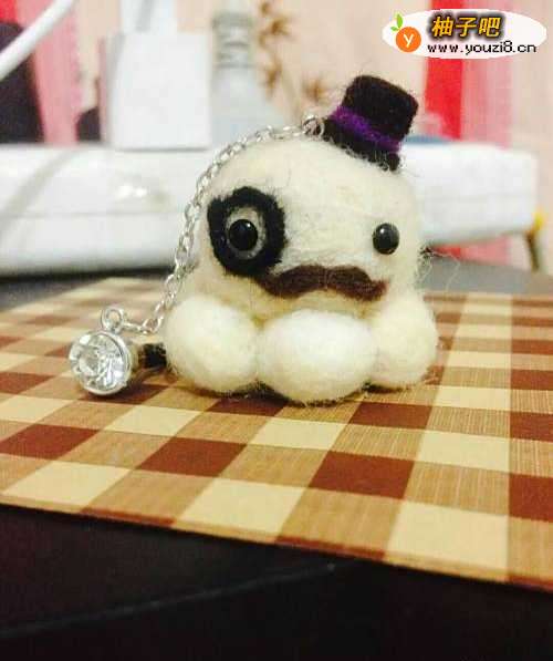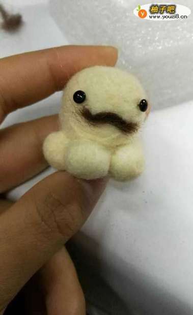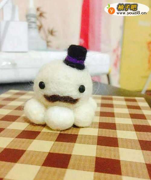 8卷一团黑色羊毛,戳成小帽子,戳在章鱼头上