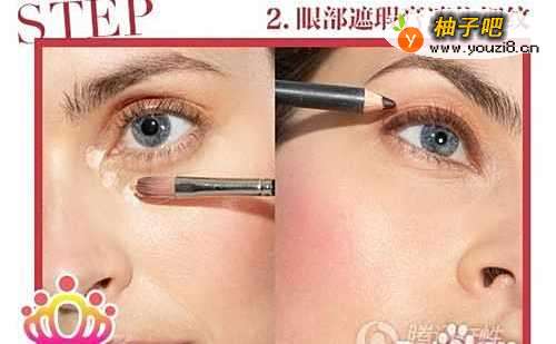 从内眼角向外涂抹遮瑕膏,这样会遮住你眼部周围的细纹,如果有必要可以适当加厚遮瑕膏的厚度,但不要让遮瑕膏线条过于明显。接下来用同样的方向来涂抹上眼睑的遮瑕膏,这样会突出眼部层次感,提亮眼部周围。