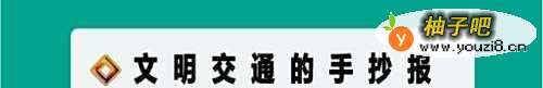 4在【文明交通的手抄报】标题的下方右侧处,在框内写上字,如下图所示。