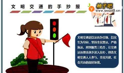 5最后,在【文明交通的手抄报】标题的下方左侧处,画出文明交通的手抄报相关内容及外框线,如下图所示。
