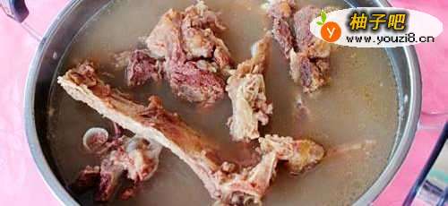 做法:把牛骨洗干净斩块,红萝卜去皮切块,番茄切片,姜切片,葱切末,把牛骨放入砂锅里,加水煮开,把浮沫撇掉,再用小火慢慢煮两小时,最加入红萝卜、番茄、酱油、和姜片煮半小时,最后,加入葱末,用味精调味即可,这款牛骨汤含有丰富的钙和蛋白质,胡萝卜含有丰富的维生素C,是补充身体各种营养的靓汤。