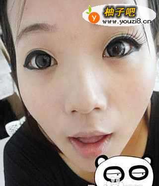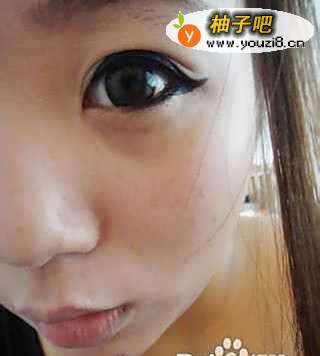 第一步先戴美瞳~我用的是深灰色的。自然~看一下两只眼睛的区别吧。戴的一只眼睛顺便变大又有神了。有木有?
