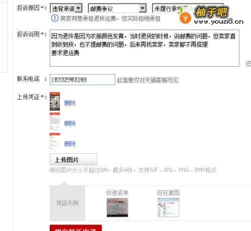 4将你的聊天记录,货物图片,快递单拍下来上传