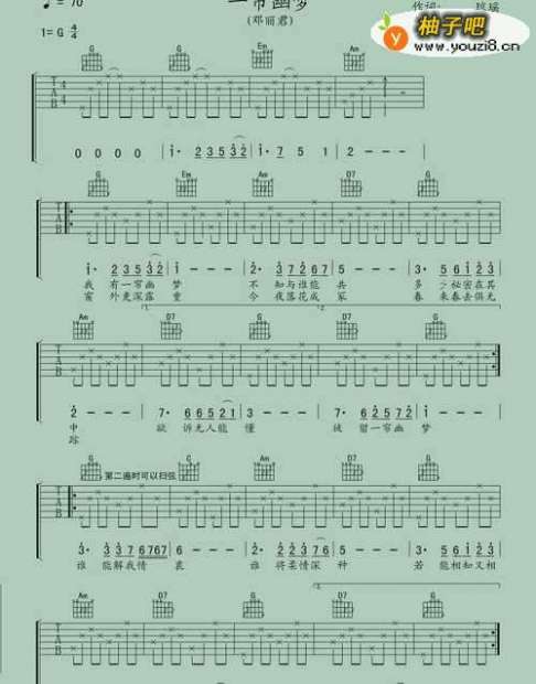 一帘幽梦双吉他,一把吉他伴奏,一把吉他弹旋律练习吉他音阶。可以用手机录制一遍伴奏,然后听着伴奏弹旋律。下面是吉他伴奏谱