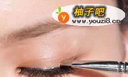 4用黑色或咖啡色眼线笔画好眉笔;对眉形好而眉毛淡者用咖啡色睫毛油淡染眉毛效果更佳。然后同样使用咖啡色眼影刷在下眼睑睫毛根本的后2/3处位置,凸显眼睛轮廓。