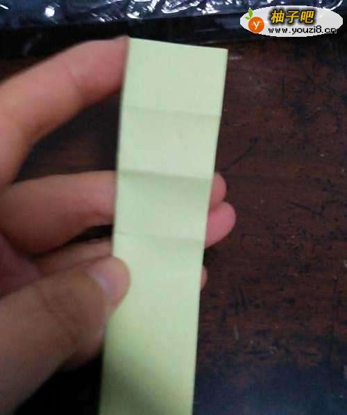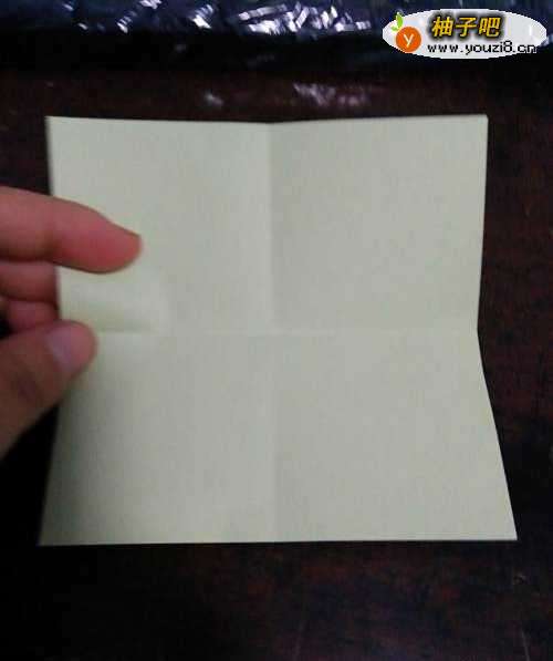 最好用红色的纸哦!(家里没了红色的纸了,我用的别的颜色的貌似不是那么喜庆哈。)我们首先把彩纸两条中线对折,如下图所示。
