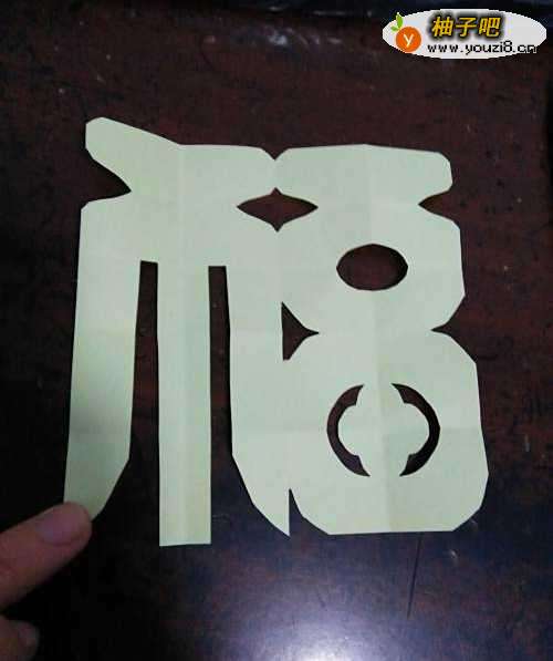 6我们用剪刀把画好的地方剪掉后,打开福字就做好了。亲们说,要是红色的是不是就更漂亮的了。