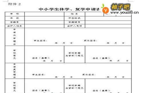 想学校提出申请后,学校一般会发一张休学申请表,家长认真填写,在申请表上主要就是写清楚孩子休学的原因,孩子的一些情况。