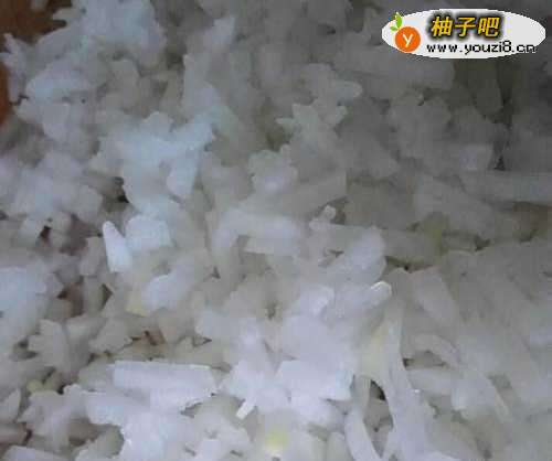 2然后把准备好的萝卜切成丝,并切成末,备用。