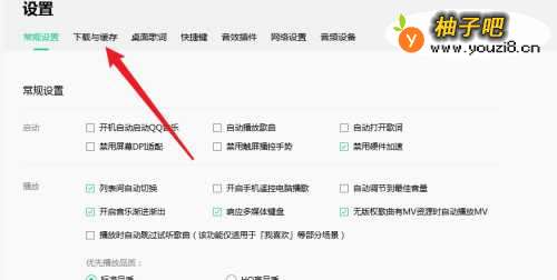 4点击设置界面菜单栏中的【下载与缓存】选项。