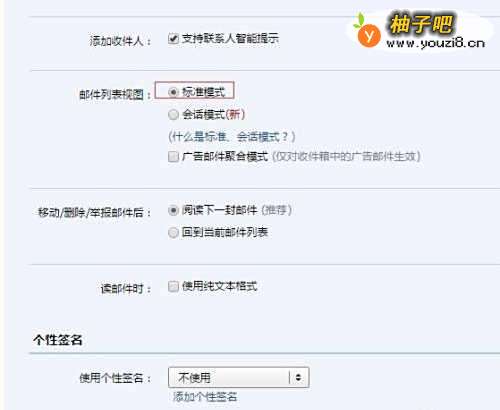 在设置界面,可以设置一些关于邮箱的功能,显示等。