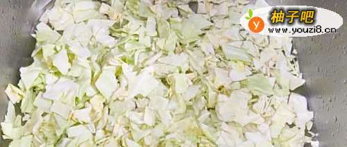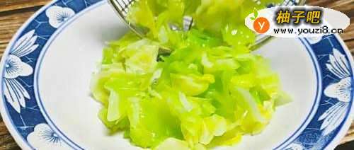 3焯水1分钟把包菜捞出来放到凉水里过凉,沥干水分后放在盘子里。
