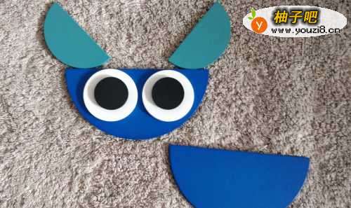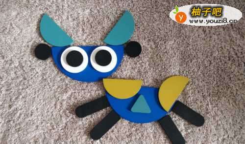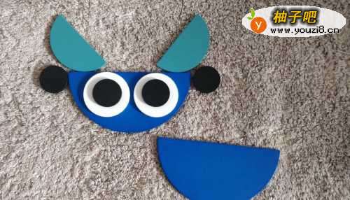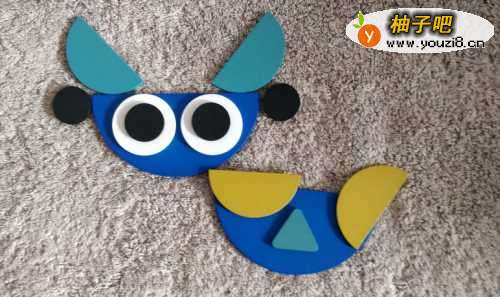 10将手指形两个一组,放在下侧大半圆下面的左右两侧,如图。小鹿就拼好了。