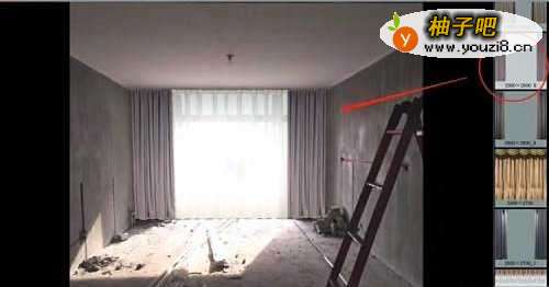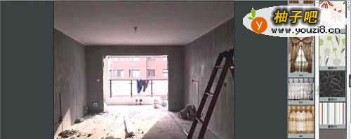 3上述步骤完成后点击保存,返回软件首界面,在软件右侧素材栏中选取合适的素材,对毛坯房进行装饰。如图添加窗帘与墙饰,毛坯房中杂物可被遮挡,只需要在“区域属性”中调整下“祛斑”值即可;