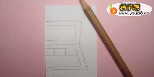 2接着,把正方形卡纸对折一半,并用铅笔在白纸上,画出化妆盒图形,根据对称图形,这里画出半个图形,如下图所示。