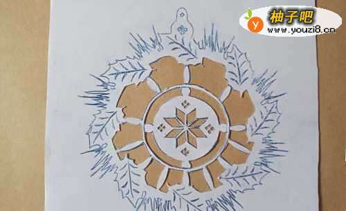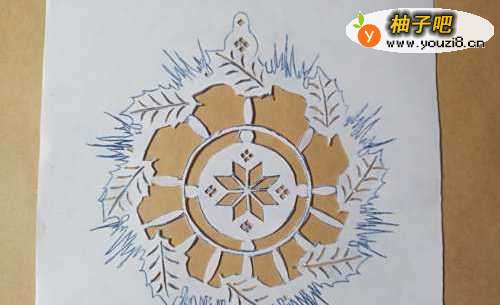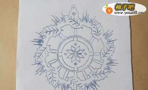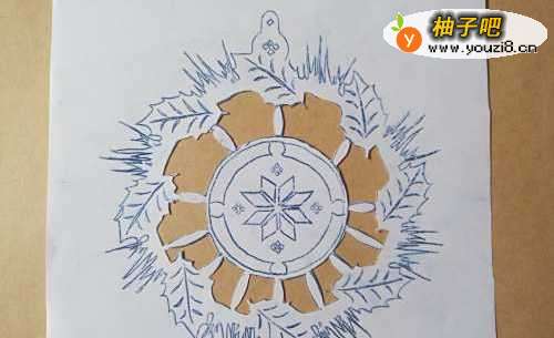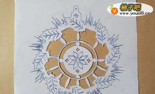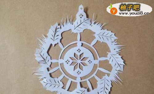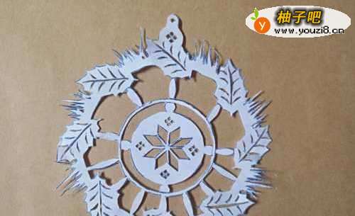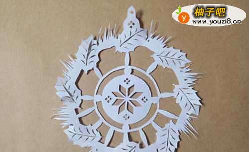 分享一款非常漂亮的剪纸,边缘是许多叶子组成的,适合用于圣诞节装饰,下面我们一起来制作一个树叶花环挂饰吧!