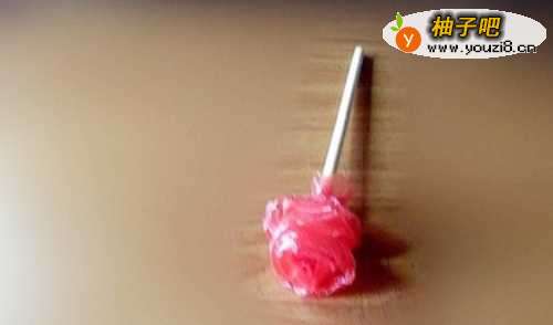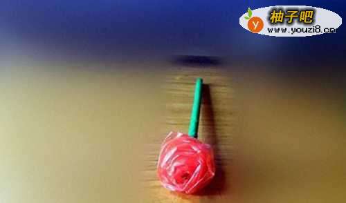 6用绿色胶带把一次性筷子缠起来,玫瑰花就有了花杆儿。