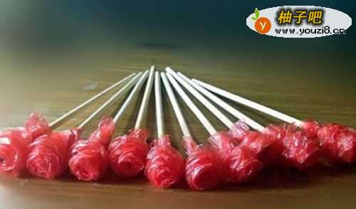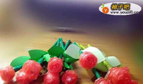 普普通通的塑料袋,裁一裁,卷一卷,竟然变成了红彤彤的玫瑰花。