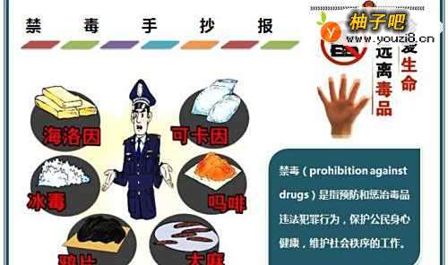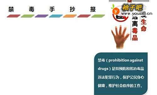 2在【禁毒手抄报】标题的右侧处,画出画面丰富内容,如下图所示。
