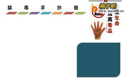 4在【禁毒手抄报】标题的下方右侧处,在框内写上字,如下图所示。