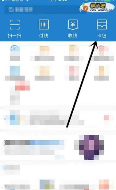 我们打开支付宝,在首页的右上方就可以看到 卡包,点击一下;