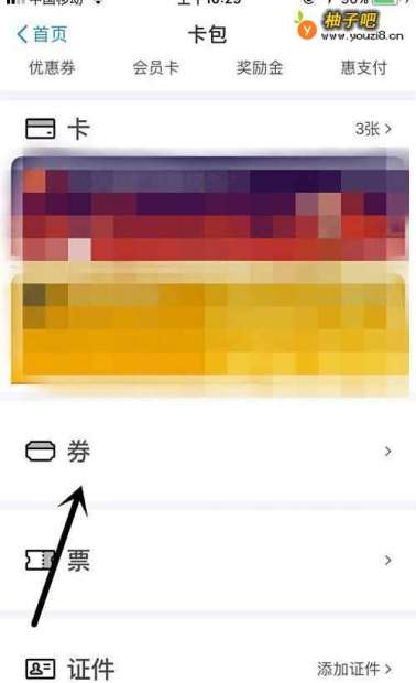 手机支付宝如何查看卡券、?具体路径怎么走