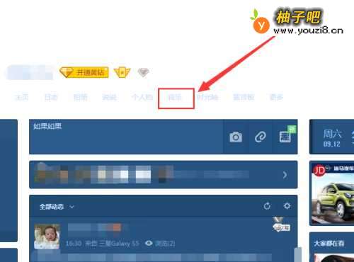 2打开QQ空间之后,我们点击QQ空间里的“音乐” 如图