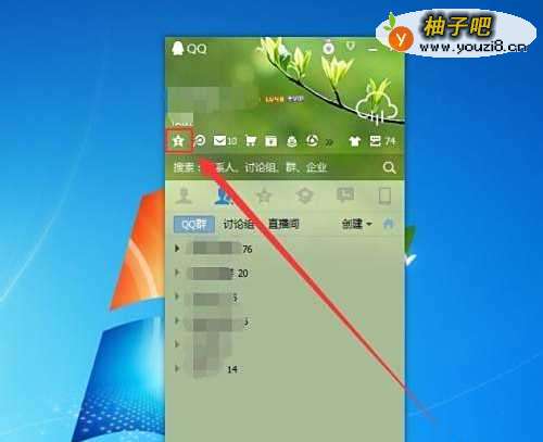 首先打开QQ软件,输入自己的账号和密码,登陆上QQ,然后点击QQ软件界面上五角星图标,以此进入QQ空间 如图