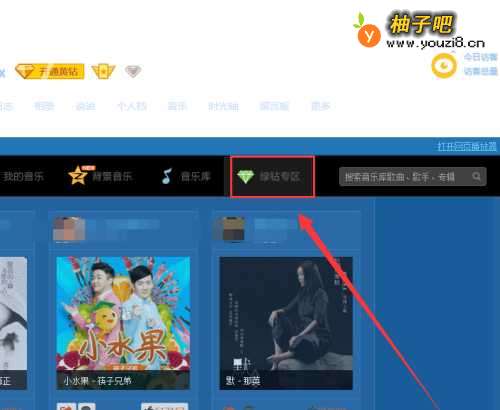 3打开音乐之后,我们继续点击里面的“绿钻专区”选项 如图