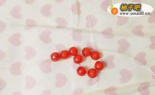 8再把尼龙线两端拉紧,第二圈的六个珠子也穿好了。以此类推,只要学会了穿一个圈,根据需要的图案,穿无数个圈,只是每个圈里的珠子个数不同,但穿法一样。