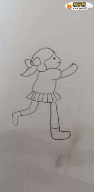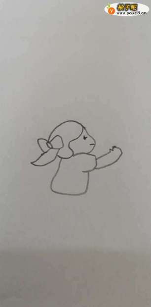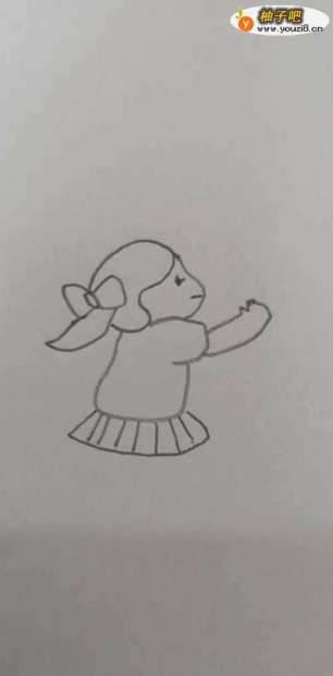 4画出小女孩的肩膀把脖子遮住了,画出伸展的手臂。