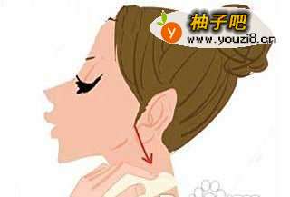 接着,沿着脖子的方向向下延伸,下颚的下方也要涂抹,这样就会在脸的周围产生阴影的效果,脸的部分就看上去也就小了。