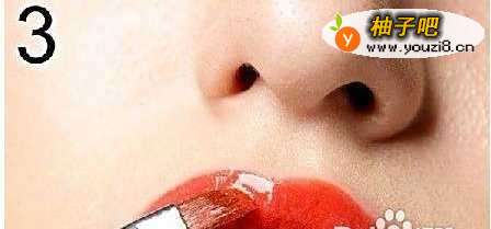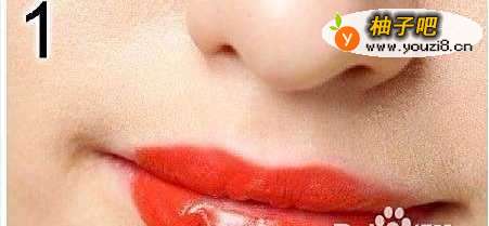 首先大面积涂上樱桃色唇膏,主要是让唇部着色,所以不用小心翼翼描绘唇型,嘴角唇峰就算没涂到也没关系。