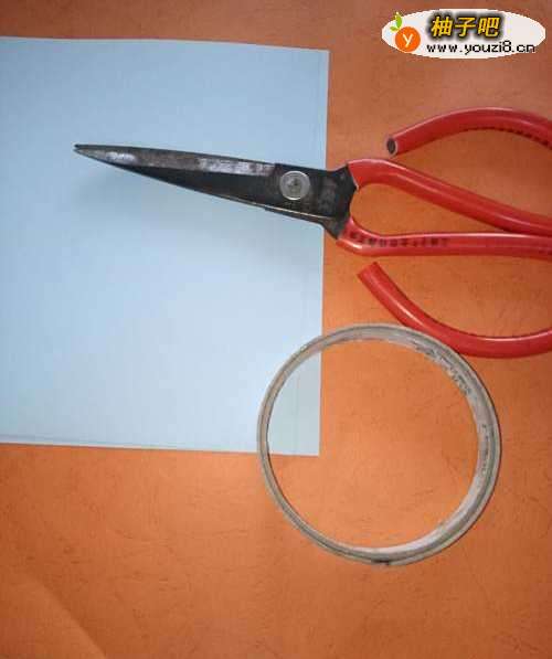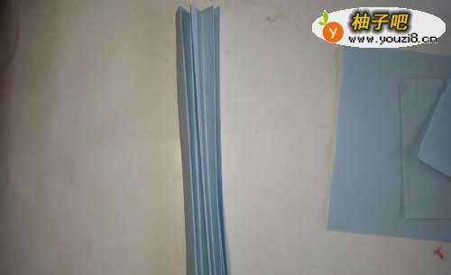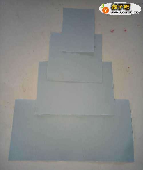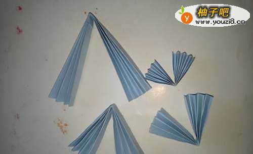 2把软一点的蓝色的卡纸,裁剪成宽度一致,长度依次递减的四张。(卡纸的宽度可以大一些,在后面的过程中需要折叠使用。)