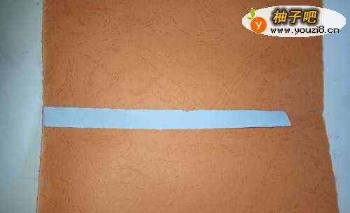 5裁剪一段长度合适,宽度适中的纸条,粘贴在卡纸的中间位置,这是圣诞树的树干部分。