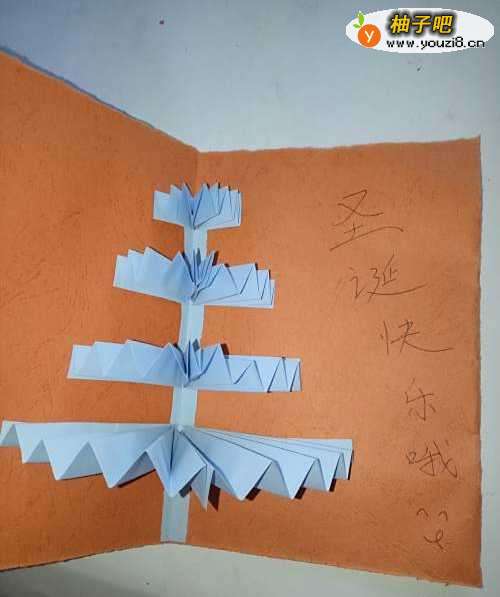7最后,我们用自己喜欢的颜色的 笔,在合适的位置写上圣诞的祝福语。圣诞节立体手工贺卡完成。