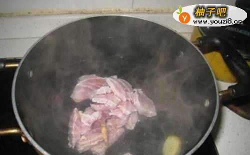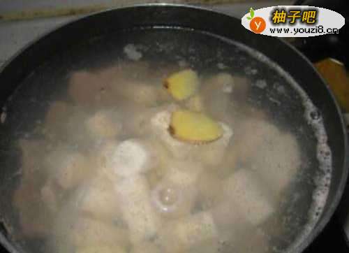 3瘦肉和生姜片下锅加水煮