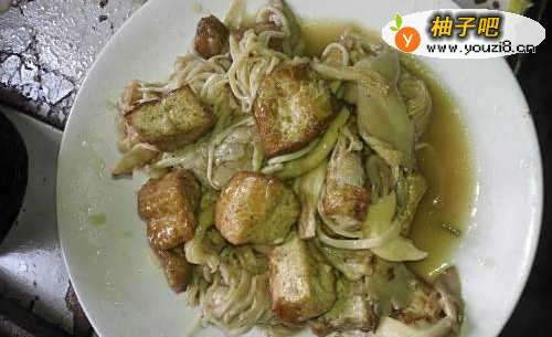 3豆腐,切块控水,锅放油,将至炸熟!捞出控油!