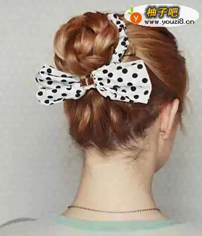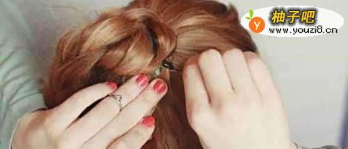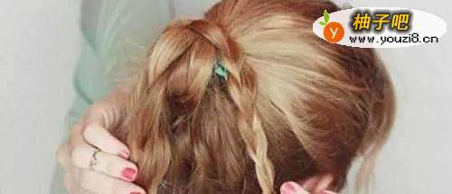4.绑马尾时绕个圈,将剩馀头发用发夹固定