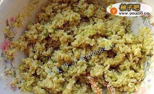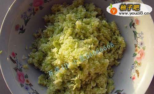 3将沥干水的圆白菜切碎,剁成馅,用绞馅机会更快些。