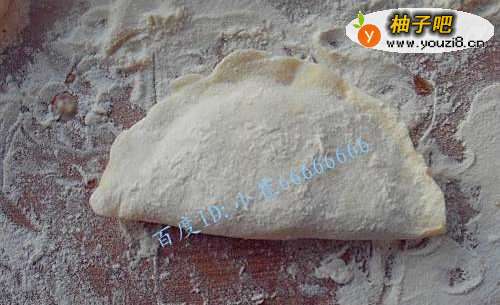 8将面皮对折捏好,捏成像大饺子一样的形状,这就是头菜盒子的生坯,像这样多包一些。