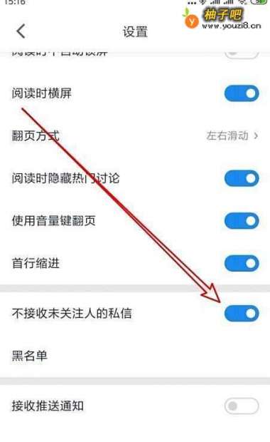 4这样就会打开微信读书的设置页面了,在页面中找到“不接收未关注人的私信”设置项。