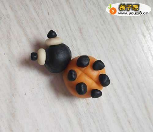 4如图把黄色圆球和大黑色圆球粘在一起,黄色是瓢虫身体,黑色是头部。