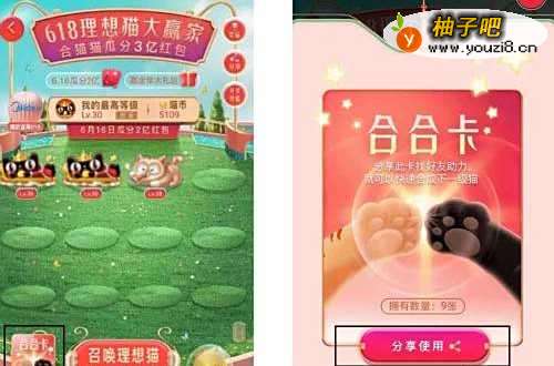 5点击合合卡作用是,点击”分享“就给好友,好友也有合合卡可以助力你的猫如是刚好29级会帮你升到30级, 获取渠道在进店或者帮助淘友时可以获得.