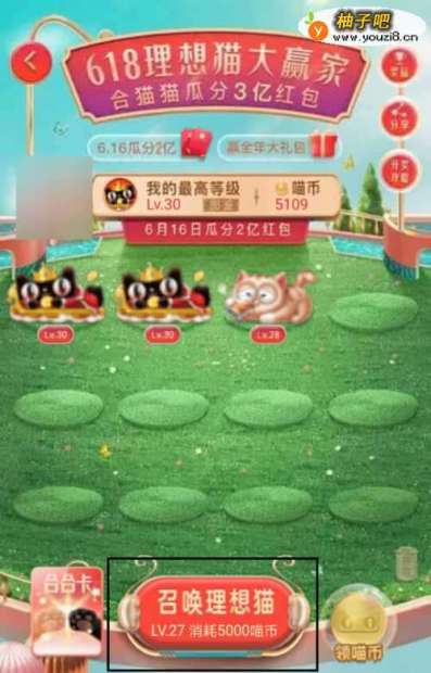 7在6月16日00点00分如果集齐12只30级猫还可以抽理想大礼包.