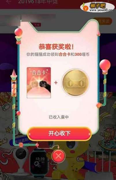 4点击”逛店铺“在倒计时10秒之后可以得喵币300币,合合卡会随机获得
