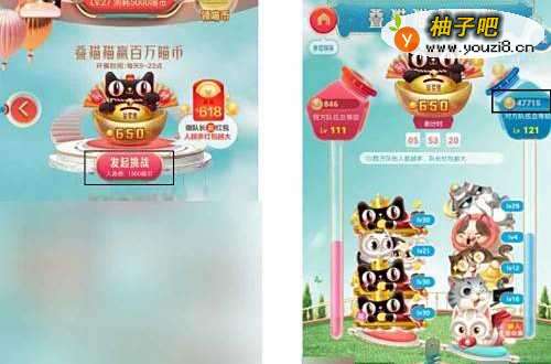 6还可以发起”叠叠猫挑战“,只有淘友加入好就可以和其他队伍PK总等级胜出可以产生更多喵币,也可以开启挑战后点击邀请好友叠猫猫或者邀请老队友参加.