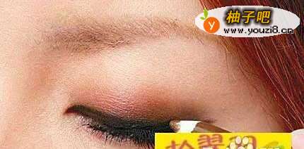 先在眼窝位置上刷上浅啡色的眼影来打底,不过注意不要高过眼窝,然后在接近眼线的位置扫上深啡色,中间的衔接过渡要扫匀。