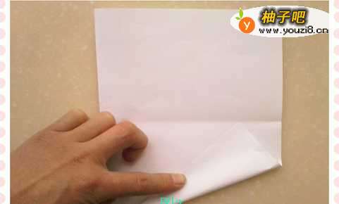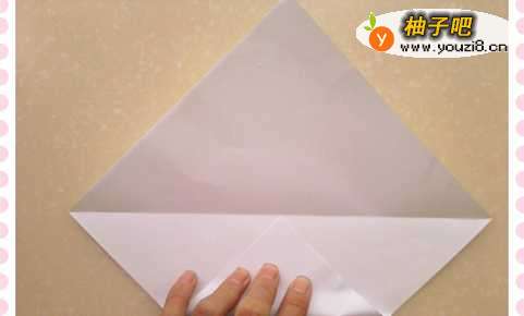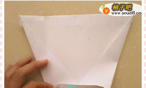 10再取一张正方形纸,沿着一角向对角对折,然后耻何展开在从该角向上折到对折线处(如图10)。